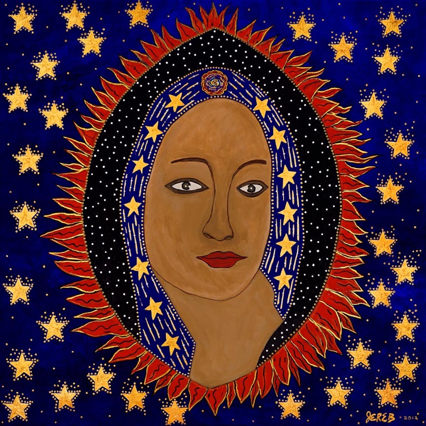 Archetypes of the Divine Feminine Click image to enlarge. Magdalena Image of Acrylic, gold leaf and gold gesso on canvas, 5 x 5' (2012)