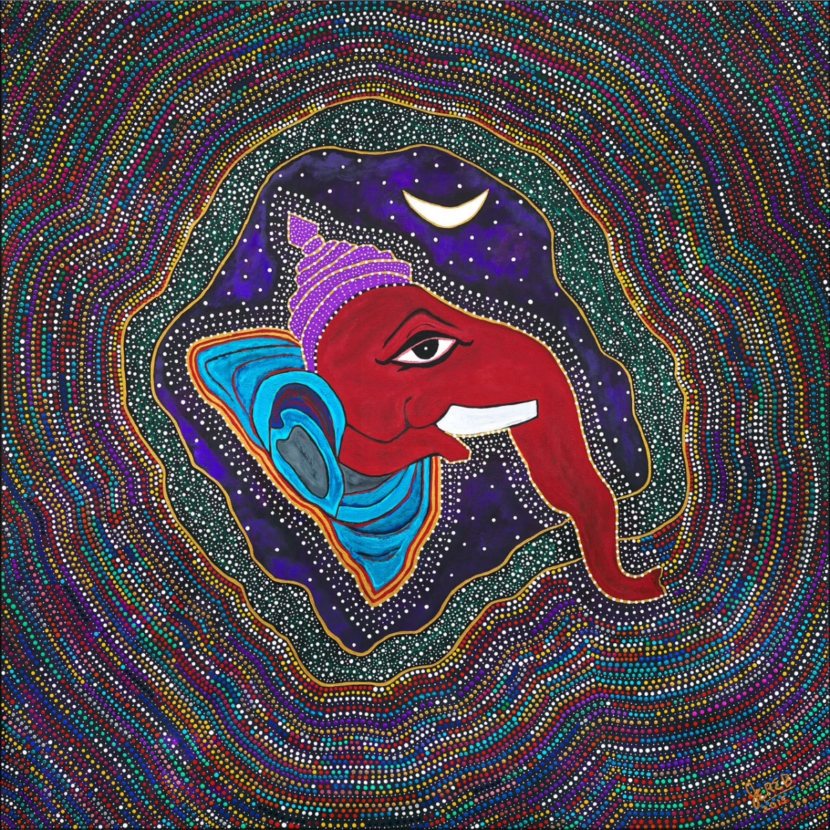 Portals of Cosmic Consciousness and Lord Ganesha Click image to enlarge. Ganesha, Atman, the Eternal Atom Image of Acrylic, gold leaf and gold gesso on canvas, 5 x 5' (2015)