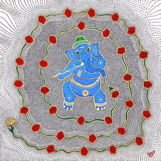 Portals of Cosmic Consciousness and Lord Ganesha Click image to enlarge. Ganesha, Portal of Enlightenment / West Image of Acrylic on canvas, 5 x 5' (2016)