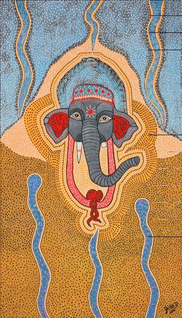 Portals of Cosmic Consciousness and Lord Ganesha Click image to enlarge. Ganesha, Shakti Image of Acrylic, gold gesso on canvas, 7 x 4' (2016)